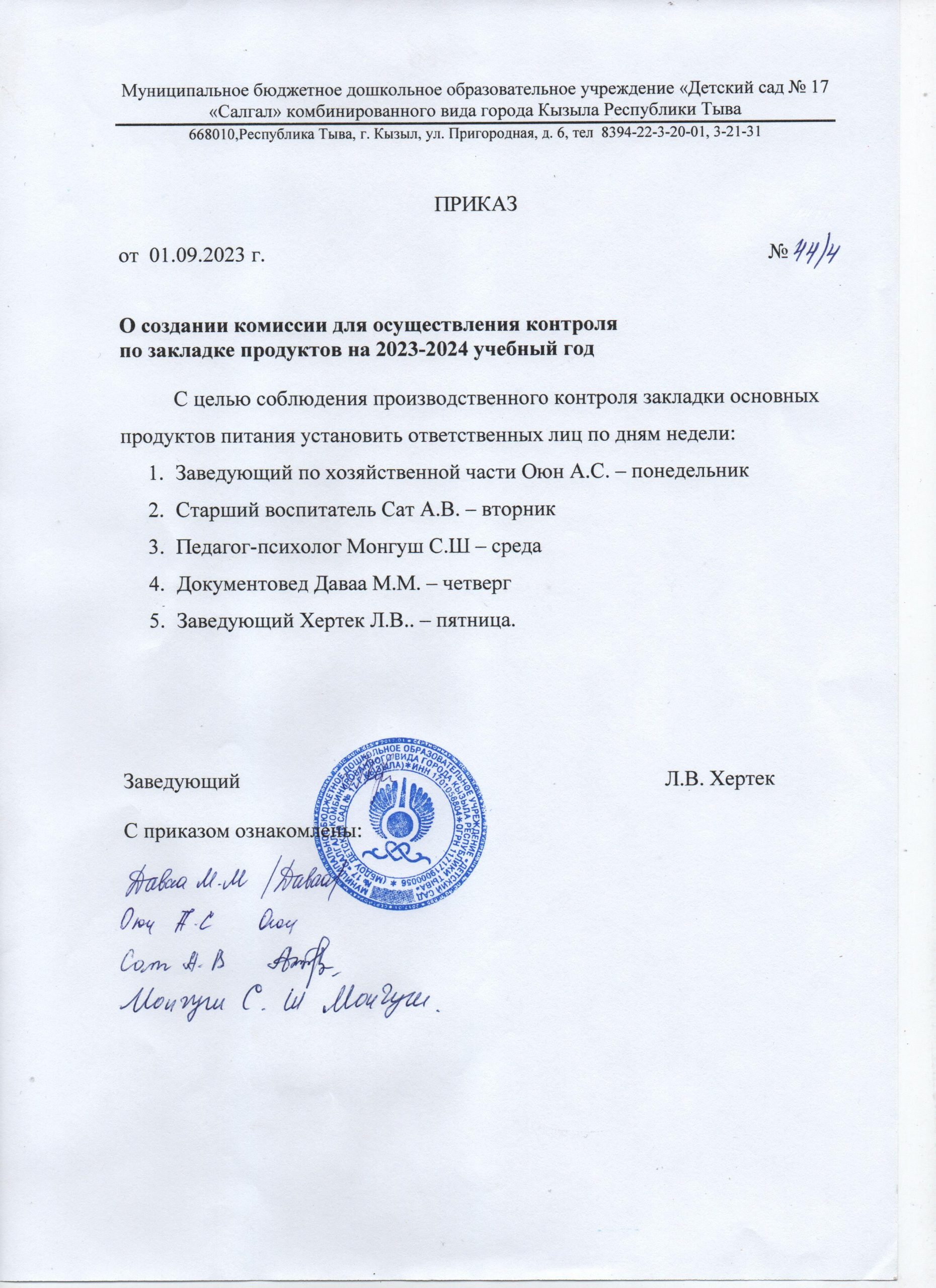 Питание СанПин..Скачать уведомление-о-профилактическом-визите-2023-январьСкачать Приказ-об-организации-питания-2023-гСкачать Положение-об-организации-питания-воспитанников-МБДОУ-№17-г.-кызыла-1Скачать приказ-о-создании-бракеражной-комиссии-на-23-24-уч.годСкачать Положение-о-бракеражной-комиссииСкачать приказ-о-комиссии-по-контролю-за-санитарно-гигианическим-сосчтоянием-помещений-дошкольного-учрежденияСкачать приказ-о-создании-комиссии-для-осуществления-контроля-по-закладе-продуктов-на-23-24-уч.-годСкачать Приказ-об-организации-питьевого-режима-воспитанников-на-23-24-уч.годСкачать Приказ-об-утверждении-графика-выдачи-пищи-по-группам-ДОУ-на-23-24-уч.годСкачать Результаты-Анкетирования-по-питанию-23-24-уч.-год-Скачать Приказ-об-усилении-мер-по-профилактике-и-прдетвращению-инфекционных-заболеванийСкачать Положение-о-комиссии-по-контролю-за-санитарно-гигиеническим-состоянием-помещений-дошкольного-учрежденияСкачать План-санитарно-гигиенического-контроля-в-МБДОУ-Детский-сад-№17-г.-Кызыла-в-2023-2024-уч.годСкачать Акарицидная-обработка-территории-МБДОУ-Детский-сад-№-17-г.-КызылаСкачать Дезенсекция-2023-гСкачать Экран-оперативного-контроля-групп-Февраль-Март-Сентябрь-ОктябрьСкачать Контроль-питания-на-группах-Сентябрь-Октябрь-2023-гСкачать Концепция-оптимального-питания-воспитанниковСкачать программа-план-2023-пдфСкачать план-мероприятий-для-формирования-культуры-здорового-питанияСкачать принципы-организации-рационального-питания-воспитанников.-Принципы-здорового-питания.Скачать контроль-заведующего-за-деятельностью-медсестры-фельдшера-2023-сентябрьСкачать ведомость-контроля-за-рационом-питания-2023Скачать ведомость-контроля-за-рационом-питания-2023-сентябрьСкачать ведомость-контроля-за-рационом-питания-2023-октябрьСкачать договор-медицинского-осмотра-работников-2023Скачать акт-санитарного-состояния-овощехранилища-и-продуктового-склада-2023-октябрьСкачать Положение-об-организации-питания-воспитанниковСкачать Положение-об-организации-питания-воспитанников-МБДОУ-№17-г.-кызылаСкачать Программа-осуществления-контроля-организации-питания-воспитанниковСкачать 01.09.2022-г.-Приказ-113.1Скачать Протокол-лаб.испытаний-№-3714-23-от-01.08.23Скачать Протокол-лаб.испытаний-№-п-2232-23-от-01.08.23Скачать Протокол-лабораторных-испытаний-№3712-23-от-01.08.2023-г.-1Скачать Протокол-лабораторных-испытаний-№3715-23-от.08.2023-1Скачать