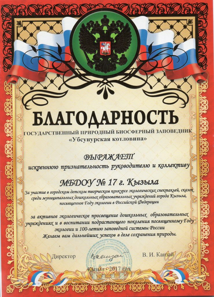 Добро пожаловать на сайт МБДОУ № 17 г. Кызыла