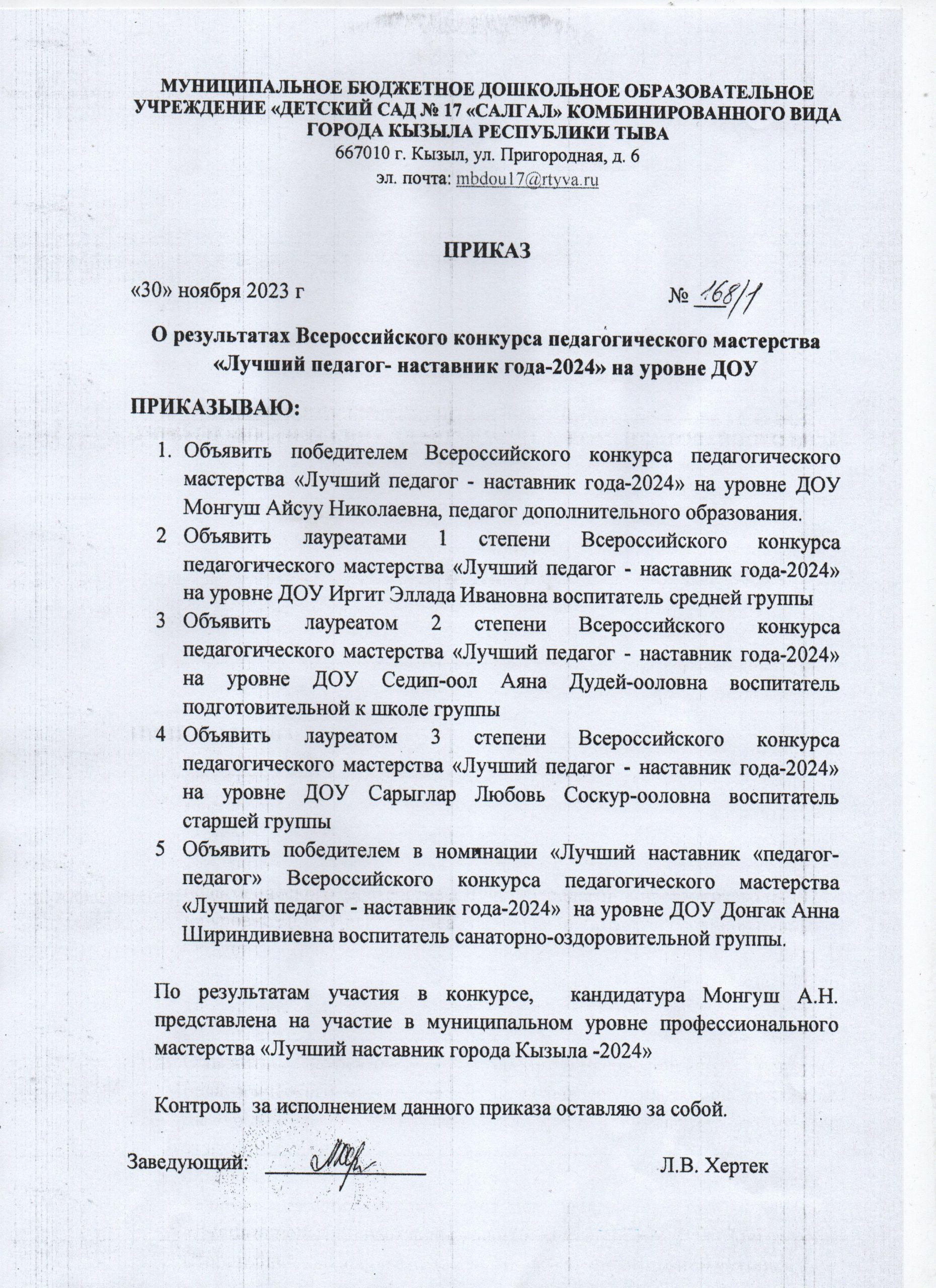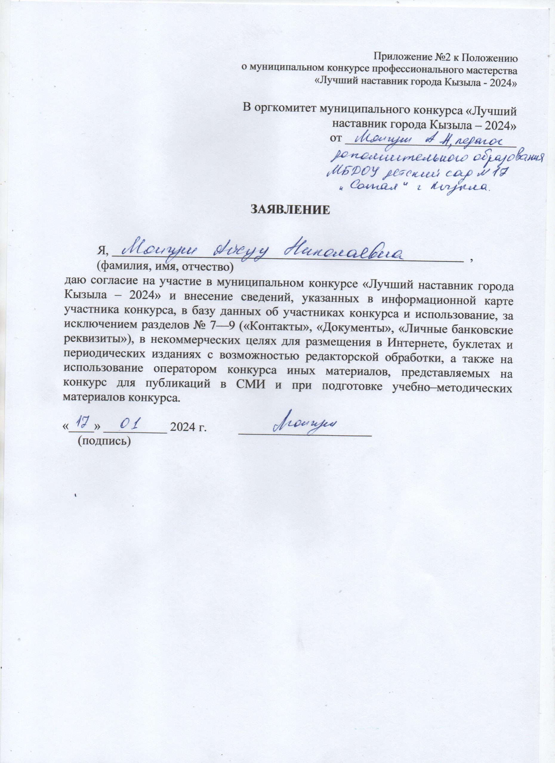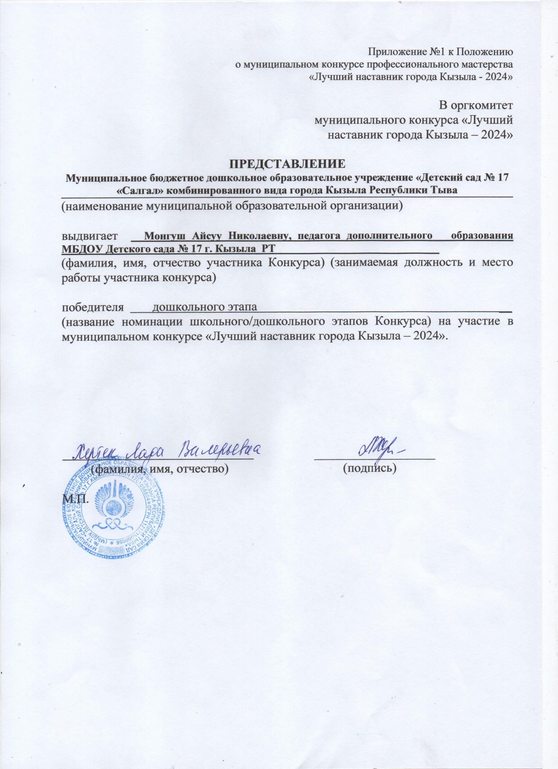 «Лучший наставник -2024» Монгуш Айсуу Николаевна